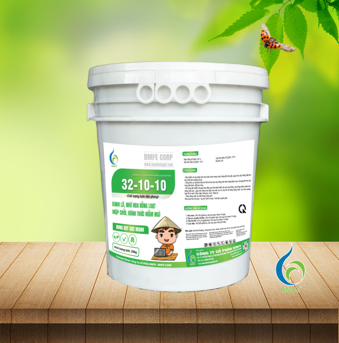 NPK 32-10-10 là dòng phân bón hỗn hợp cao cấp do BMFE CORP phân phối. Sản phẩm được thiết kế đặc biệt để kích thích cây xanh lá, bung đọt cực mạnh, mập chồi và đánh thức các mầm ngủ – mang lại sức sống vượt trội cho cây trồng trong giai đoạn sinh trưởng.