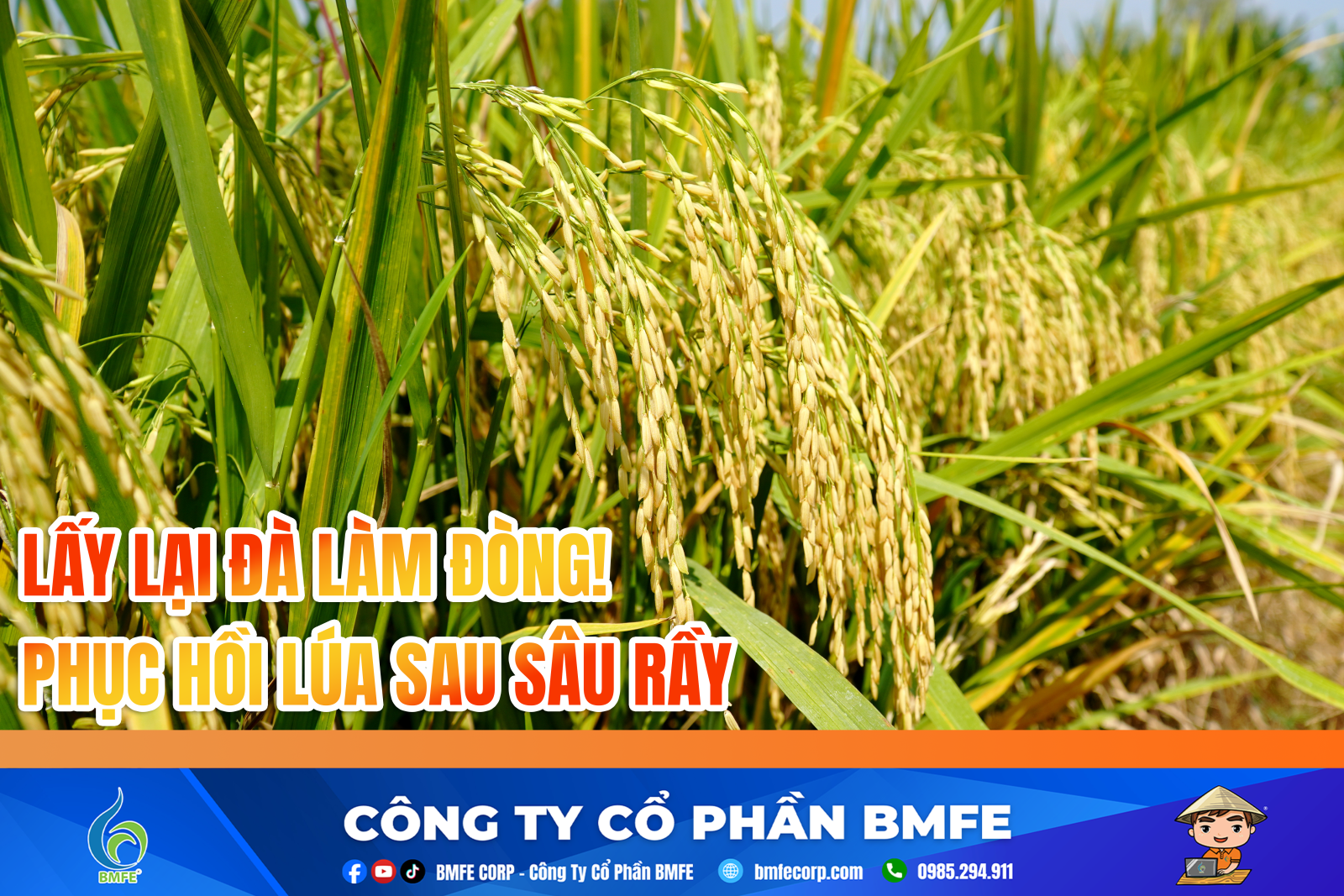 Sau những đợt tấn công dữ dội của Rầy Phấn Trắng và Sâu Cắn Chẽn, trà lúa thường rơi vào tình trạng mất sức: lá vàng, còi cọc, bộ rễ suy yếu. Nếu không can thiệp kịp thời, lúa sẽ không tích lũy đủ dinh dưỡng, dẫn đến đòng nhỏ, bông lép.
