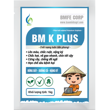 BM K PLUS là lựa chọn hàng đầu để nâng cao năng suất và chất lượng cây trồng. Với thành phần Kali Sulphat tinh khiết, sản phẩm giúp cây trồng chắc khỏe, trái nặng ký, hạt chắc mẩy và giảm thiểu sâu bệnh. Đây là giải pháp bền vững, an toàn và hiệu quả cho bà con nông dân trong quá trình canh tác.