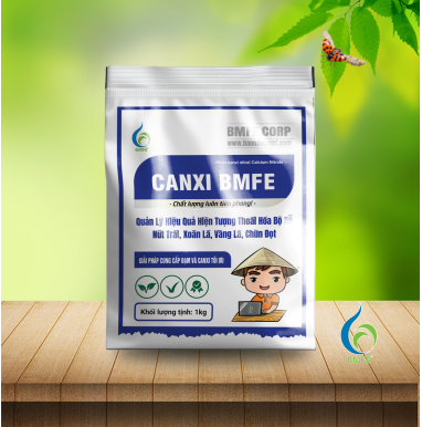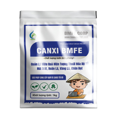 CANXI BMFE là sản phẩm phân bón chứa Canxi Nitrat (Calcium Nitrate) với hàm lượng đạm và canxi cao, giúp bổ sung dinh dưỡng nhanh chóng cho cây trồng. Sản phẩm được nghiên cứu và phát triển bởi BMFE CORP, mang đến giải pháp tối ưu trong việc quản lý hiện tượng thoái hóa bộ rễ, nứt trái, xoăn lá, vàng lá, chùn đọt.