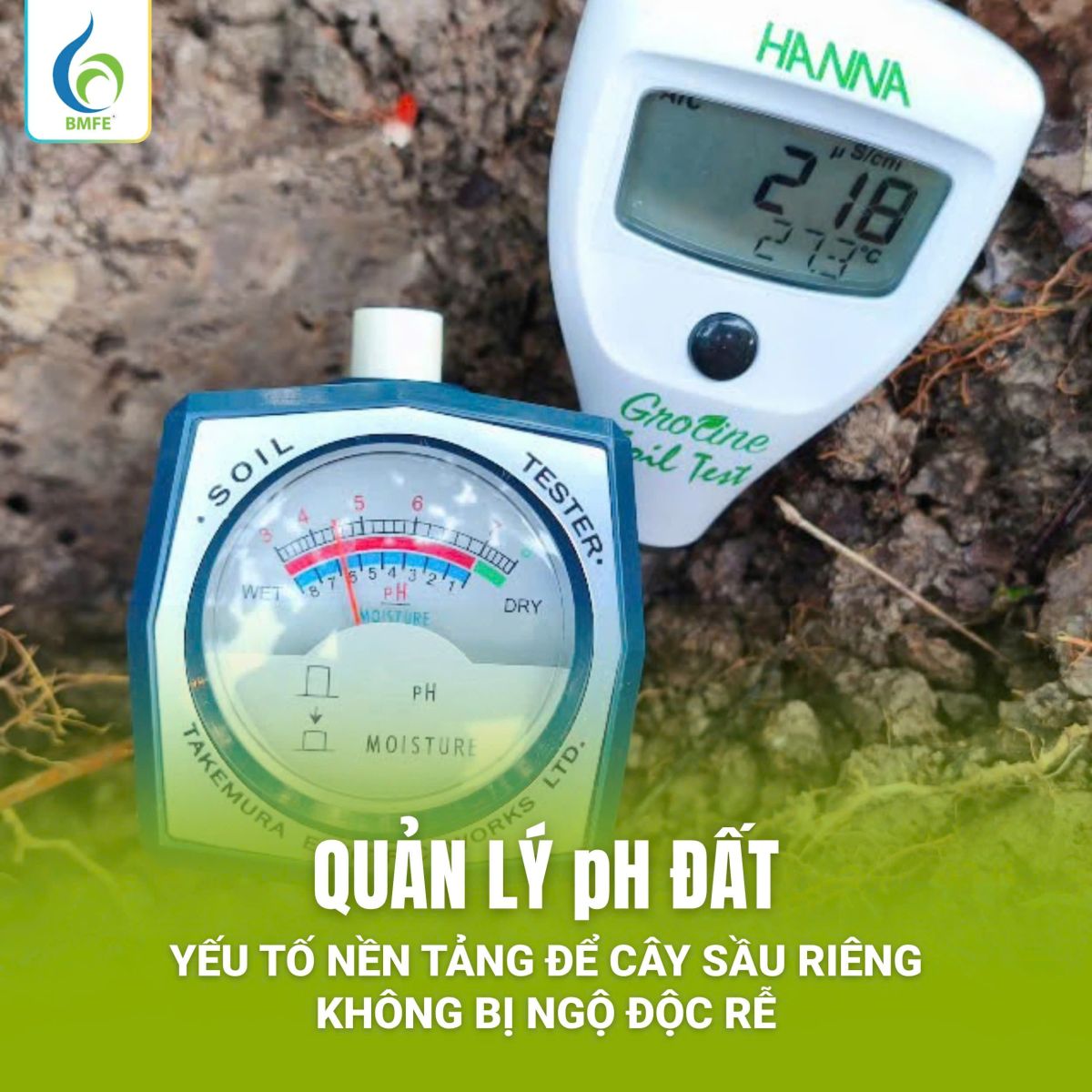 Hiện nay, nông dân có thể dễ dàng kiểm tra pH bằng bút đo điện tử HANNA hoặc máy đo pH cơ học Takemura.