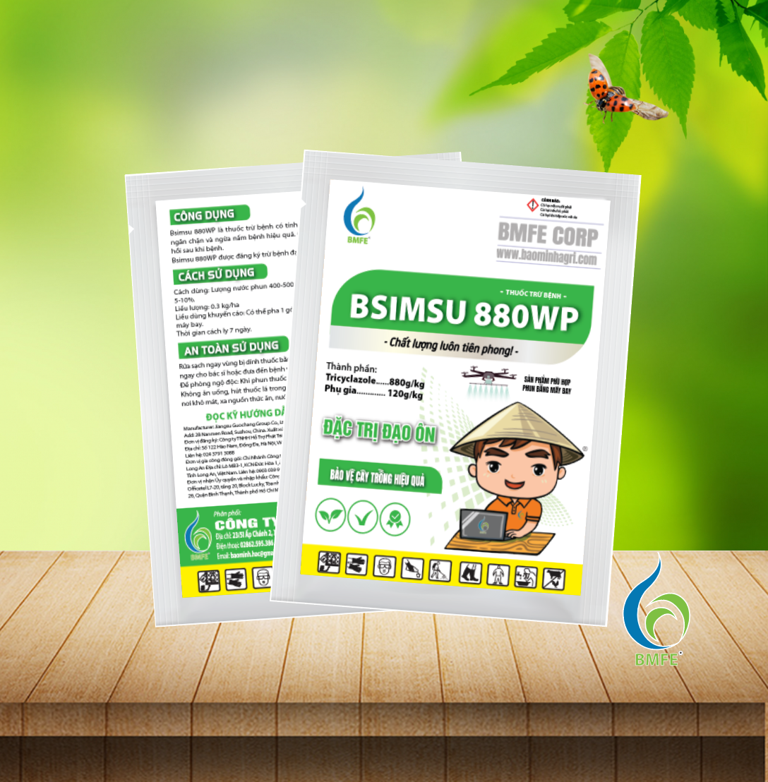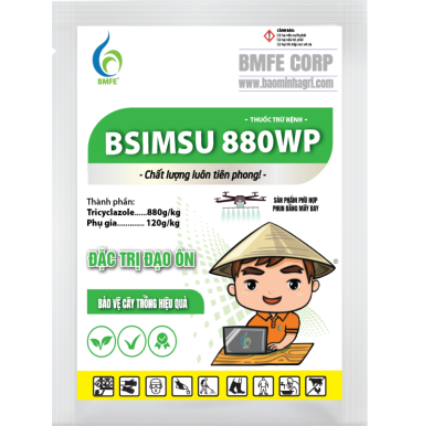 BSIMSU 880WP là thuốc trừ bệnh cao cấp được phân phối bởi BMFE CORP, chuyên trị bệnh đạo ôn trên cây lúa – một trong những bệnh hại nguy hiểm gây thiệt hại lớn đến năng suất và chất lượng mùa vụ.