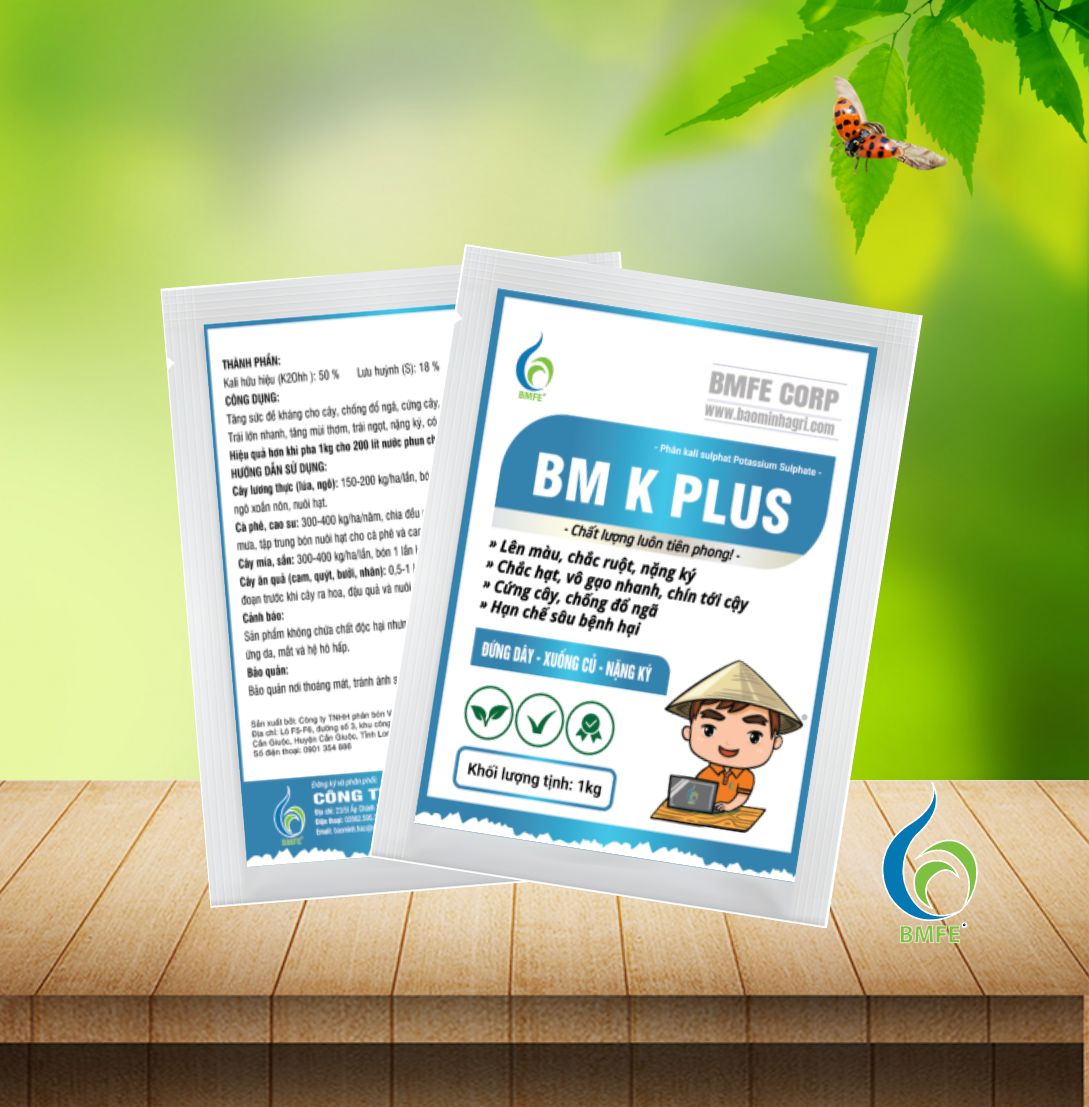 BM K PLUS là lựa chọn hàng đầu để nâng cao năng suất và chất lượng cây trồng. Với thành phần Kali Sulphat tinh khiết, sản phẩm giúp cây trồng chắc khỏe, trái nặng ký, hạt chắc mẩy và giảm thiểu sâu bệnh. Đây là giải pháp bền vững, an toàn và hiệu quả cho bà con nông dân trong quá trình canh tác.